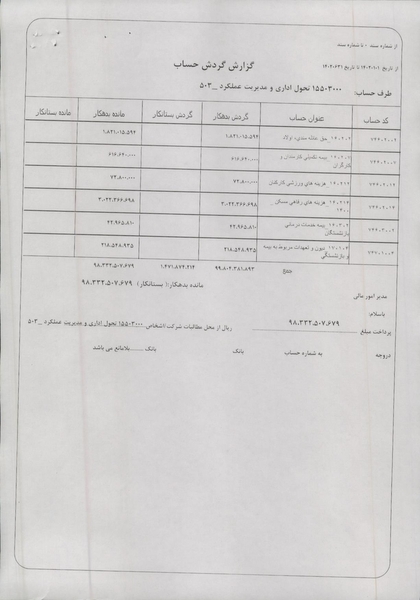 گزارش کل و تفضیلی درآمد و هزینه 6 ماهه اول سال 1402